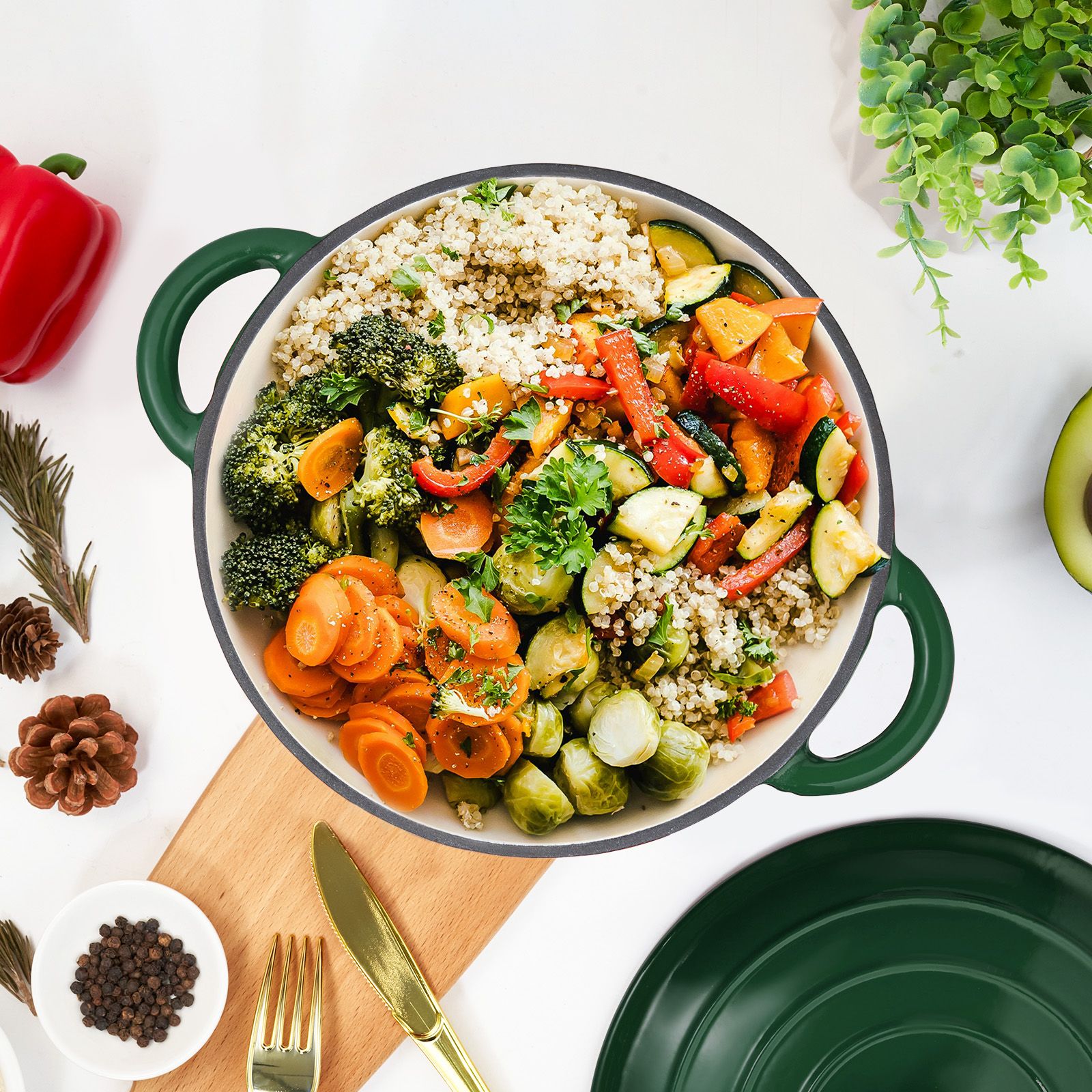 WIDE USAGE SCENARIO:This enameled cast iron dutch oven is suitable for a variety of cooking scenarios including gas, electric, ceramic and induction stoves.The natural insulation of the cast iron pan combined with the enamel surface meet your multiple cooking styles and needs. SINCERE AFTER-SALE:We insist on the principle of the supremacy of customers, to create the most sincere service for you.Dear customers, we promise to provide a one-year warranty, please feel free to contact us if you have any questions about our products.
