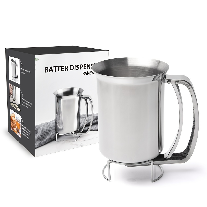 Home > 1pc Handheld Stainless Steel Batter Separator; Cupcake Batter Funnel; Batter Stirrer