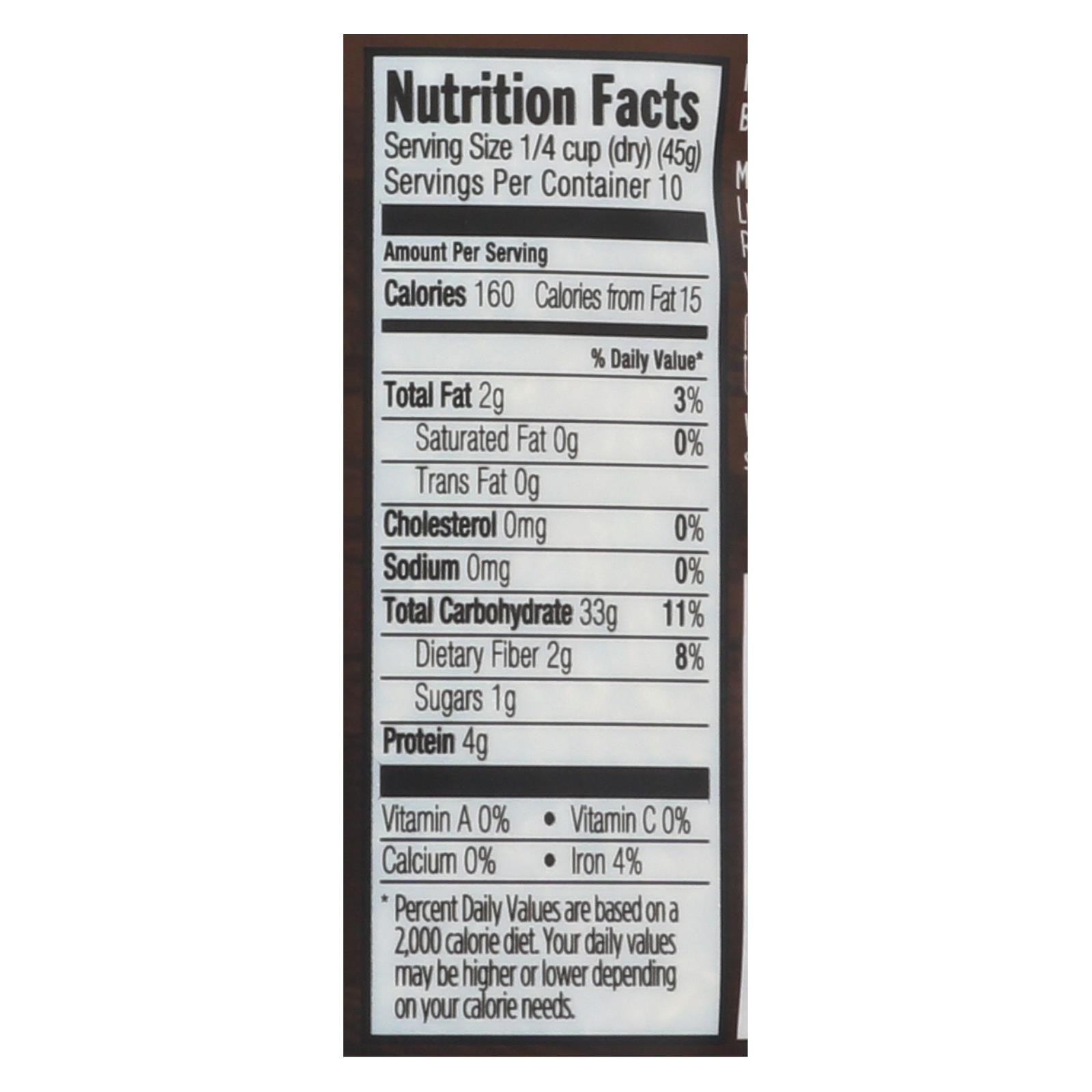 Lundberg organic sprouted brown basmati rice produces a rich, aromatic fragrance to enhance your mealtime creations. Use it as part of your main dishes and casseroles or as a hearty side served with vegetables. Grown with sustainable, organic farming practices, this germinated, whole grain basmati rice cooks in just 30 minutes, so you can quickly serve your family a dish that you feel good about feeding them. This stand-up bag contains 16 oz. Of rice, enough to make approximately 10 servings with 160 calories and 4 g of protein in each serving.