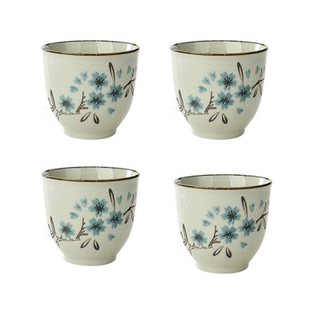4Pcs Japanese Style Sakura Ceramic Teacups Small Straight Wine Cups 150ML