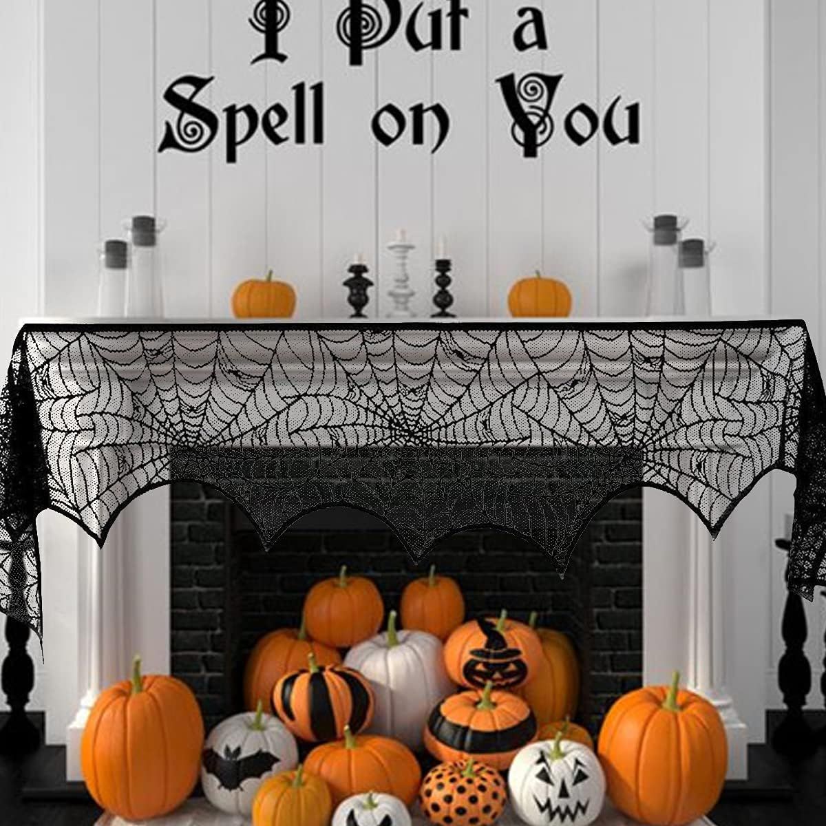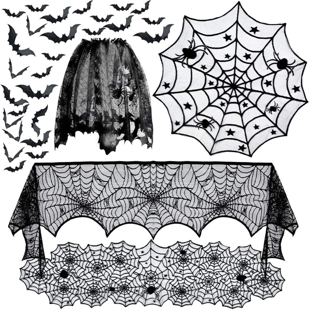 32 PCS Horrible decoration set, Lace Tablecloth, Spider Web Pentagram Round Table Mat, Black Spider Web Fireplace Cloth
