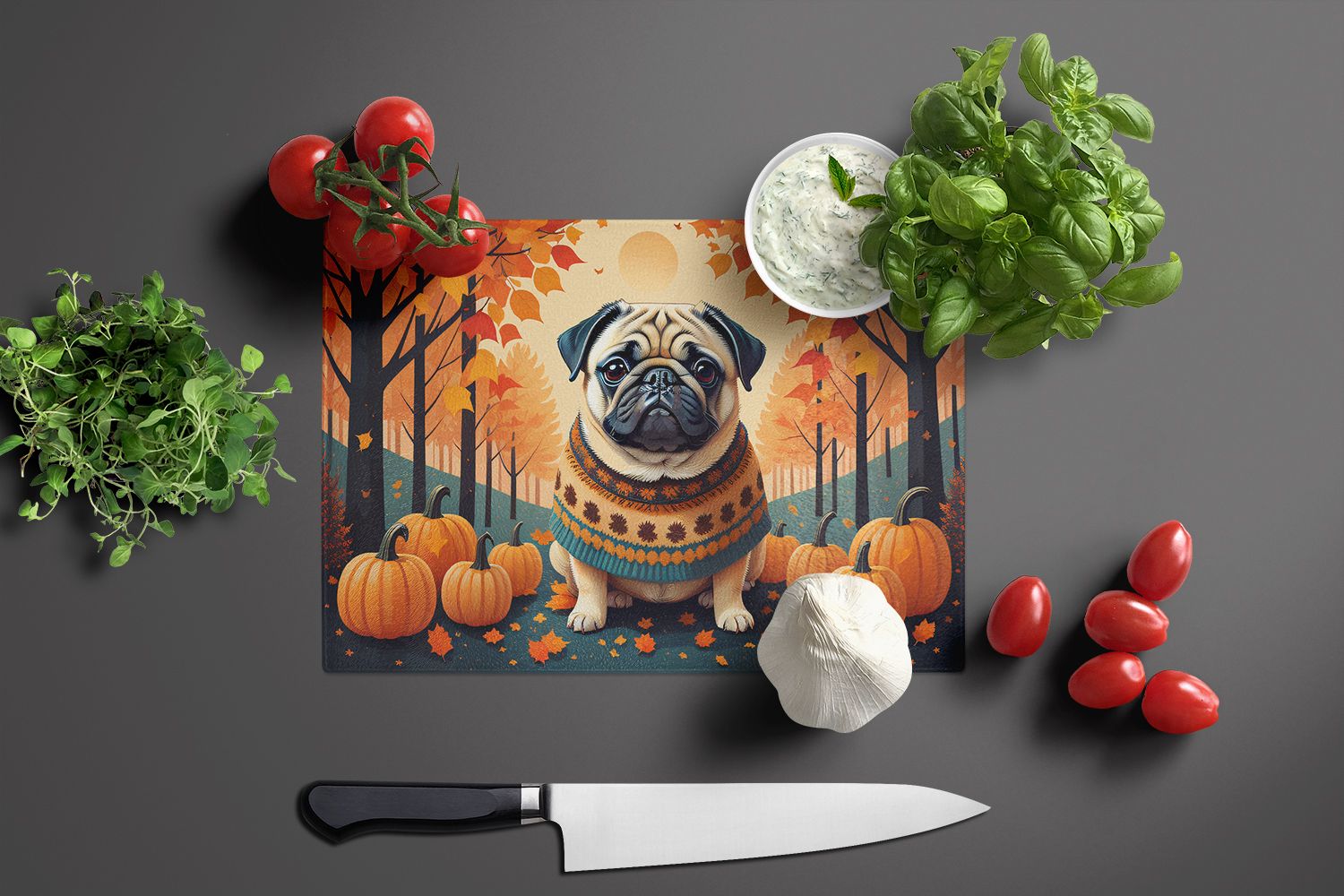 Home > NEW Fawn Pug Fall Glass Cutting Board Decorative Tempered Glass Kitchen Cutting and Serving Board Large Size Chopping Board