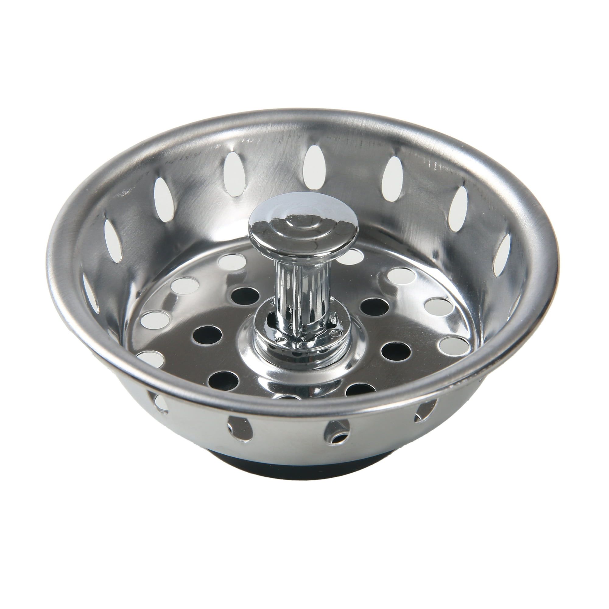 The Stainless Steel Kitchen Sink Strainer and Stopper fits most standard 3 1/2" kitchen sink drains. The stainless steel construction is durable, corrosion resistant, and rust proof for many years of use. The strainer requires a narrow center hold style drain for proper installation. This strainer and stopper combo is easy to use. Push and twist the center knob to fill the sink with water, twist and pull to strain. Convenient and easy to clean basket. Measures 3.18" in diameter.
