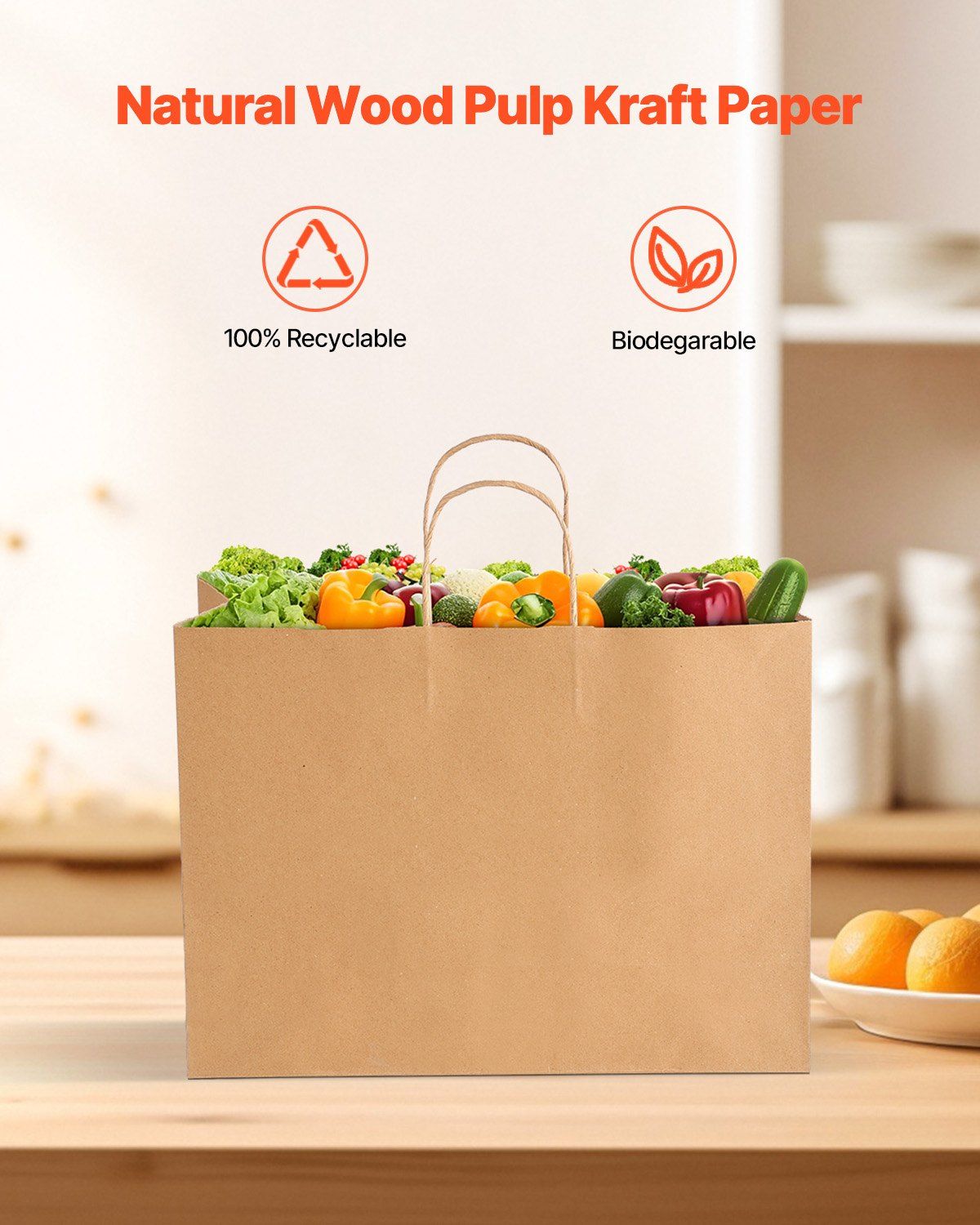 1.Degradable Kraft Paper: Made of 100% recyclable and degradable natural kraft paper, these 100pcs brown paper bags reduce pollution and prevent waste of resources.
