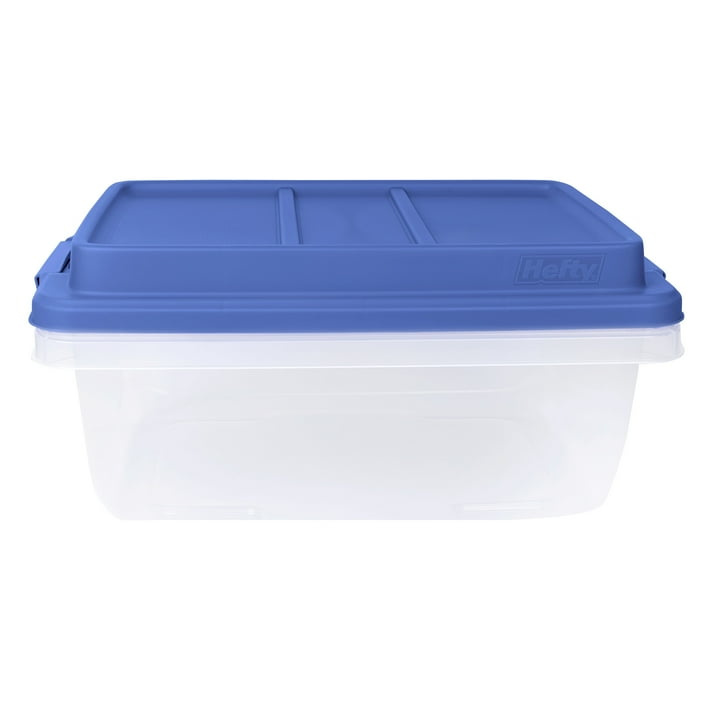 Looking for the best storage bins to organize your shoes or craft supplies? In search of a durable storage container to stow away anywhere in the home or garage? Look no further! The Hefty HI-RISE, 18 quart clear storage bin is designed to store a variety of household items, including pantry staples, clothing & shoes, seasonal items and accessories. Ready to neatly STACK? Hefty's HI-RISE patented lid design allows for secure stacking and ABOVE the rim storage, to efficiently save space within your home. A CLEAR view? Identify items quicker and more effectively with the HI-RISE clear storage base. The large, click secure latches allow for secure and comfortable transport. Work to maintain your storage space and organize your household with maximum containment. Store and better protect items to SAVE SPACE and edit your home or business. Check out the complete line of Hefty HI-RISE storage bins to help create a clean & uniform storage space! Adult usage.