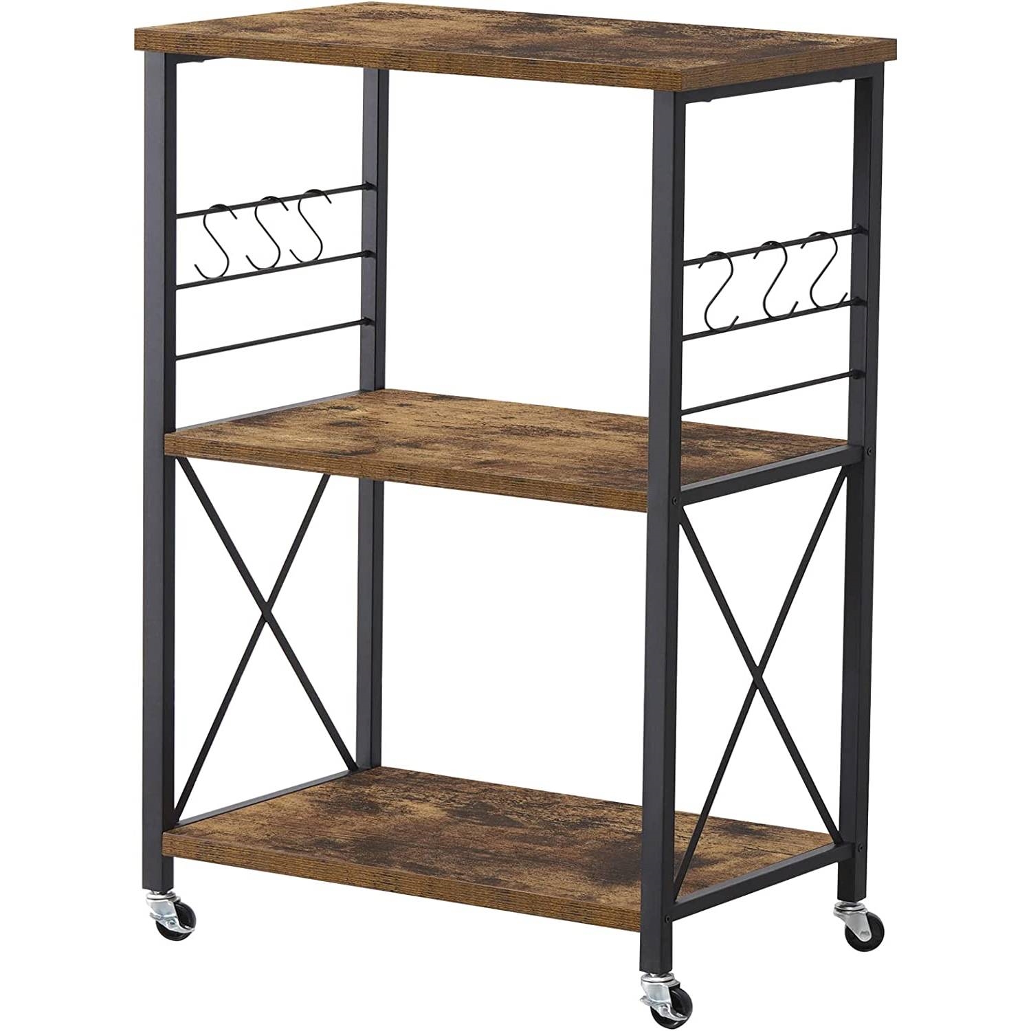 Black Metal Rustic Brown Wood 3-Shelf Kitchen Baker's Rack Microwave Cart